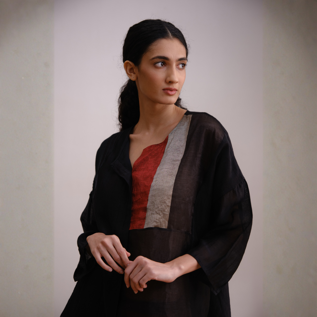 Dry clean only. Store the garments in a muslin cloth, away from sunlight in a dry environment. Air the textile once every few months.